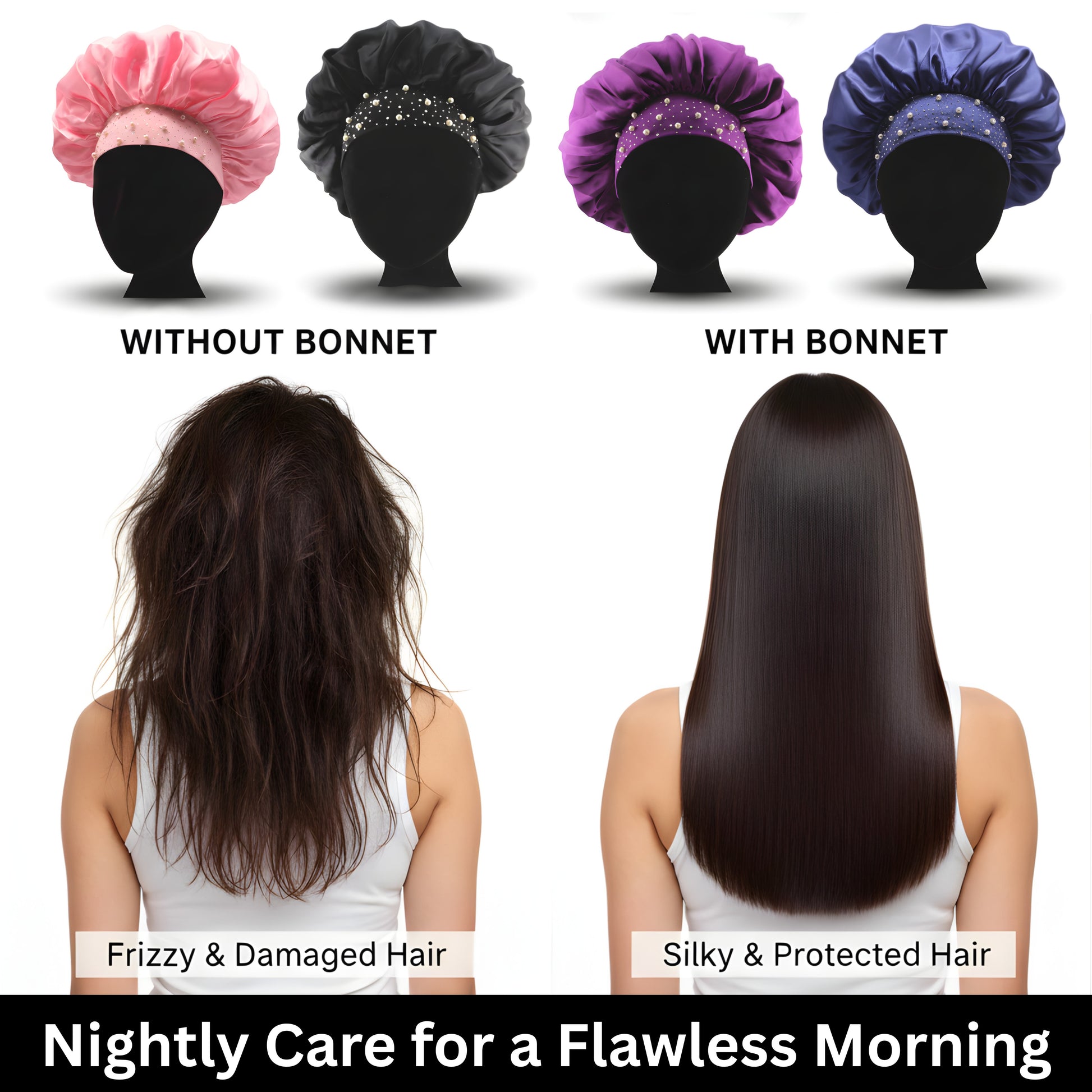Perfect for nightly hair care, travel, or as a thoughtful gift, this satin sleep bonnet is a must-have for frizz-free, healthy hair every morning.